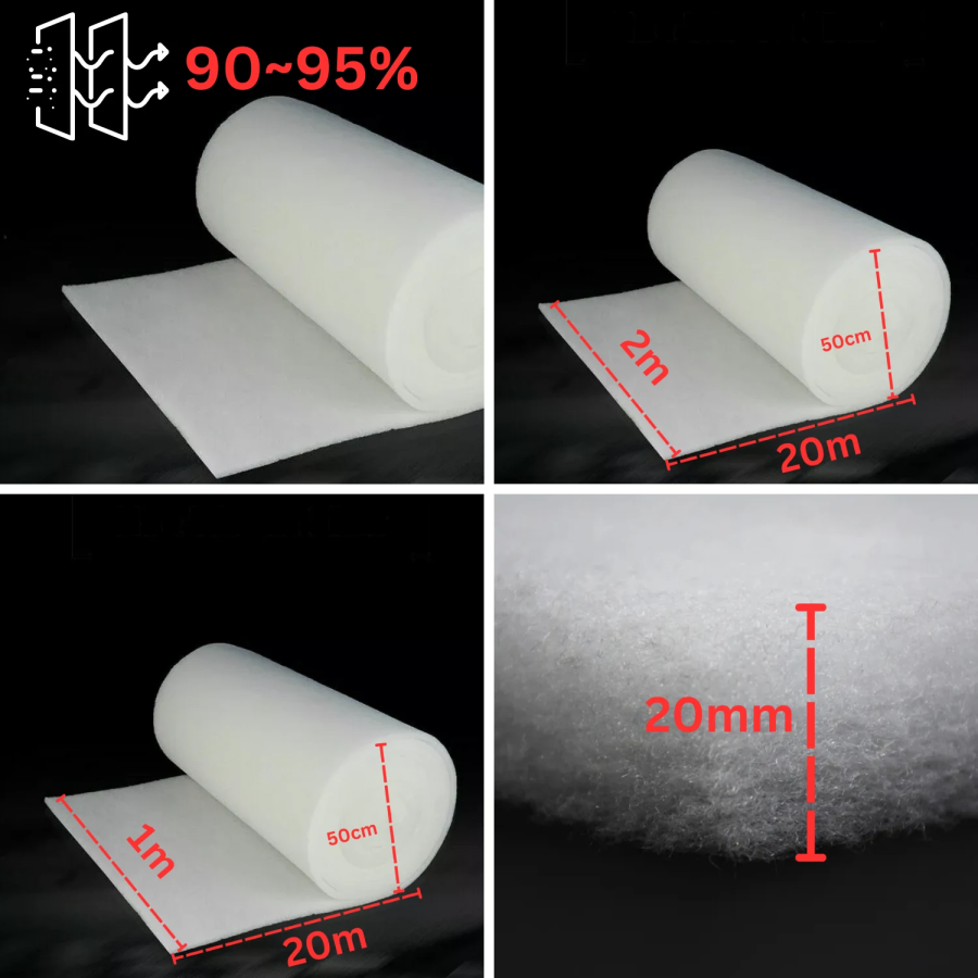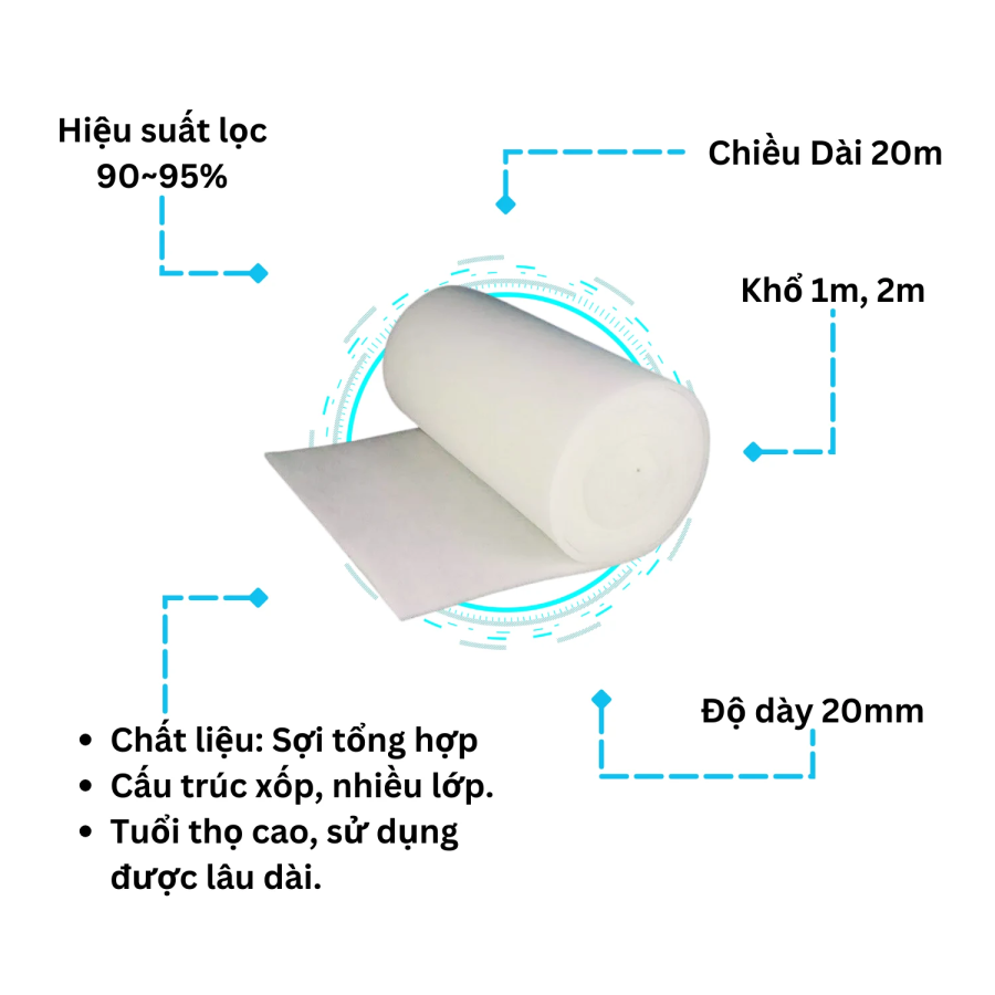 Bông lọc nước dày 20mm được sản xuất theo công nghệ ép nhiệt và đan sợi, giúp đảm bảo độ bền và hiệu suất lọc: