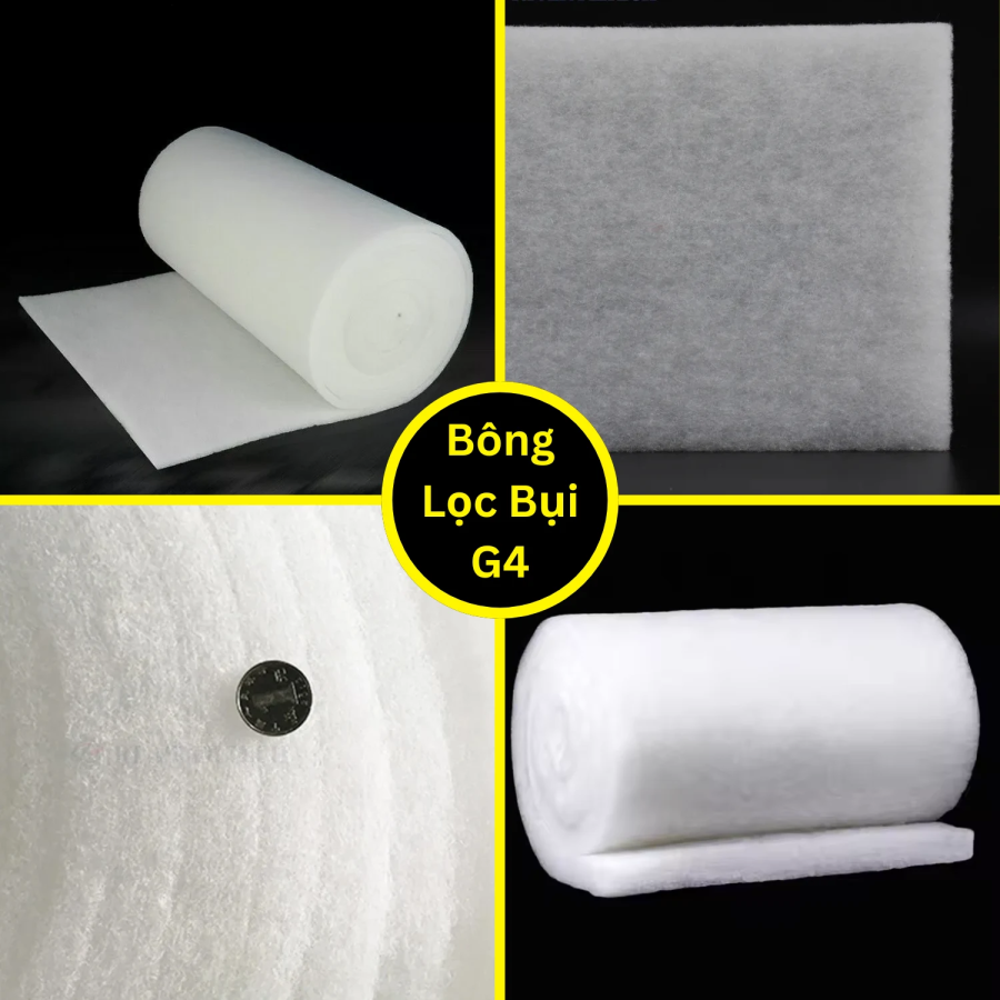 Bông lọc bụi G4 là là loại bông được tạo ra bằng cách xếp nhiều lớp sợi tổng hợp có độ dày 20mm rồi liên kết chúng lại với nhau bằng nhiệt theo tiêu chuẩn châu Âu (EN779) được ứng dụng nhiều trong các hệ thống xử lý không khí