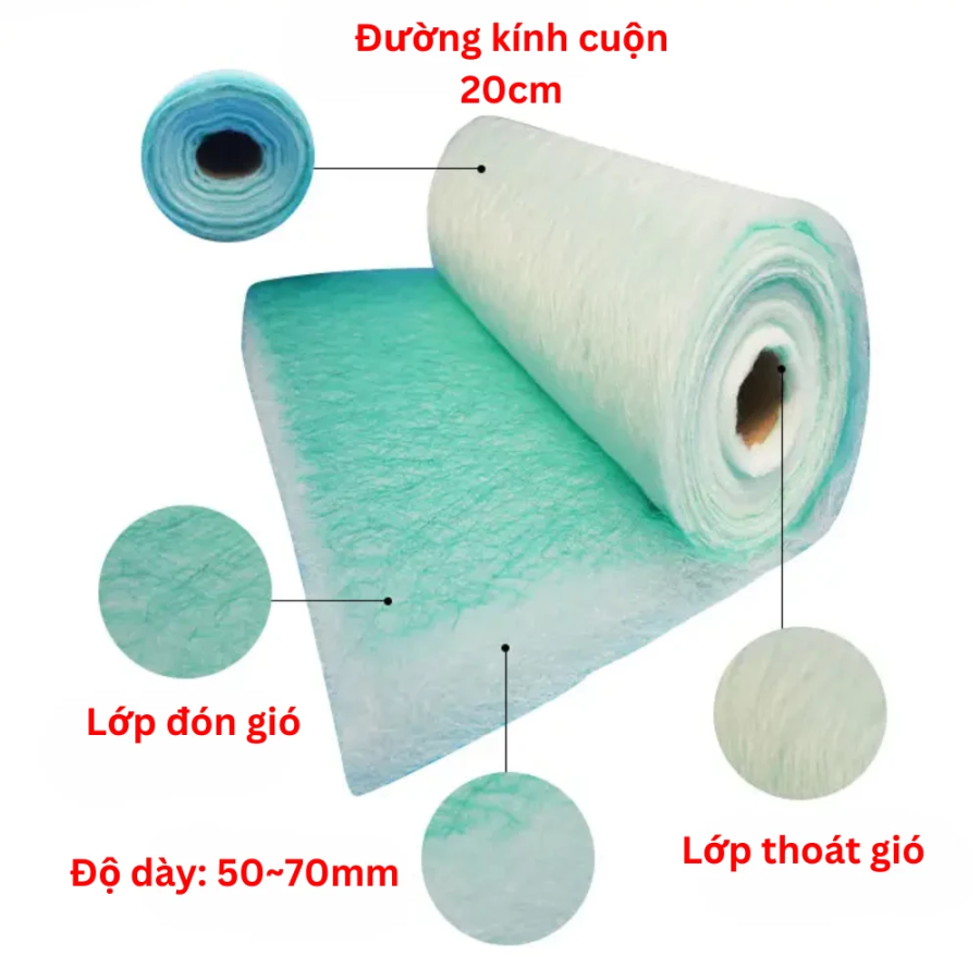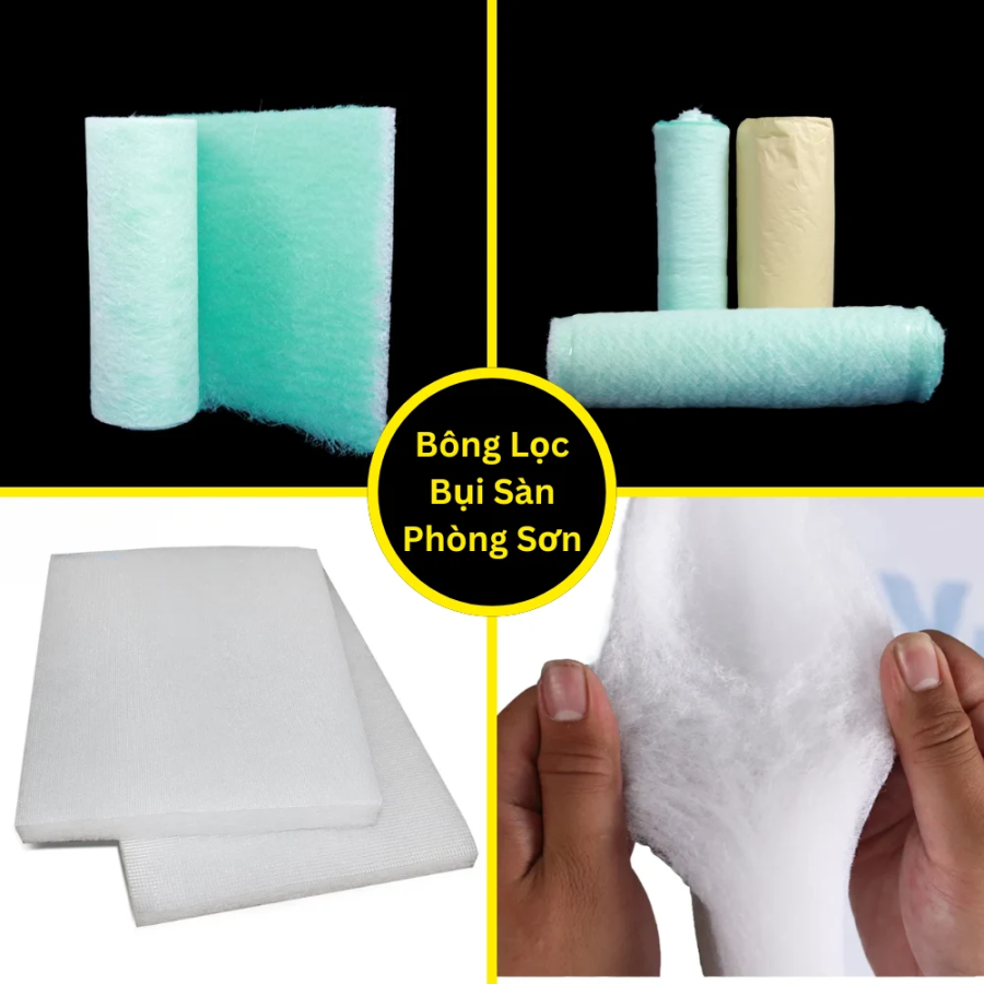 - Bông lọc sợi thủy tinh (Fiberglass Filter): Giữ bụi sơn tốt, chịu nhiệt cao, tăng độ mịn cho bề mặt sơn.